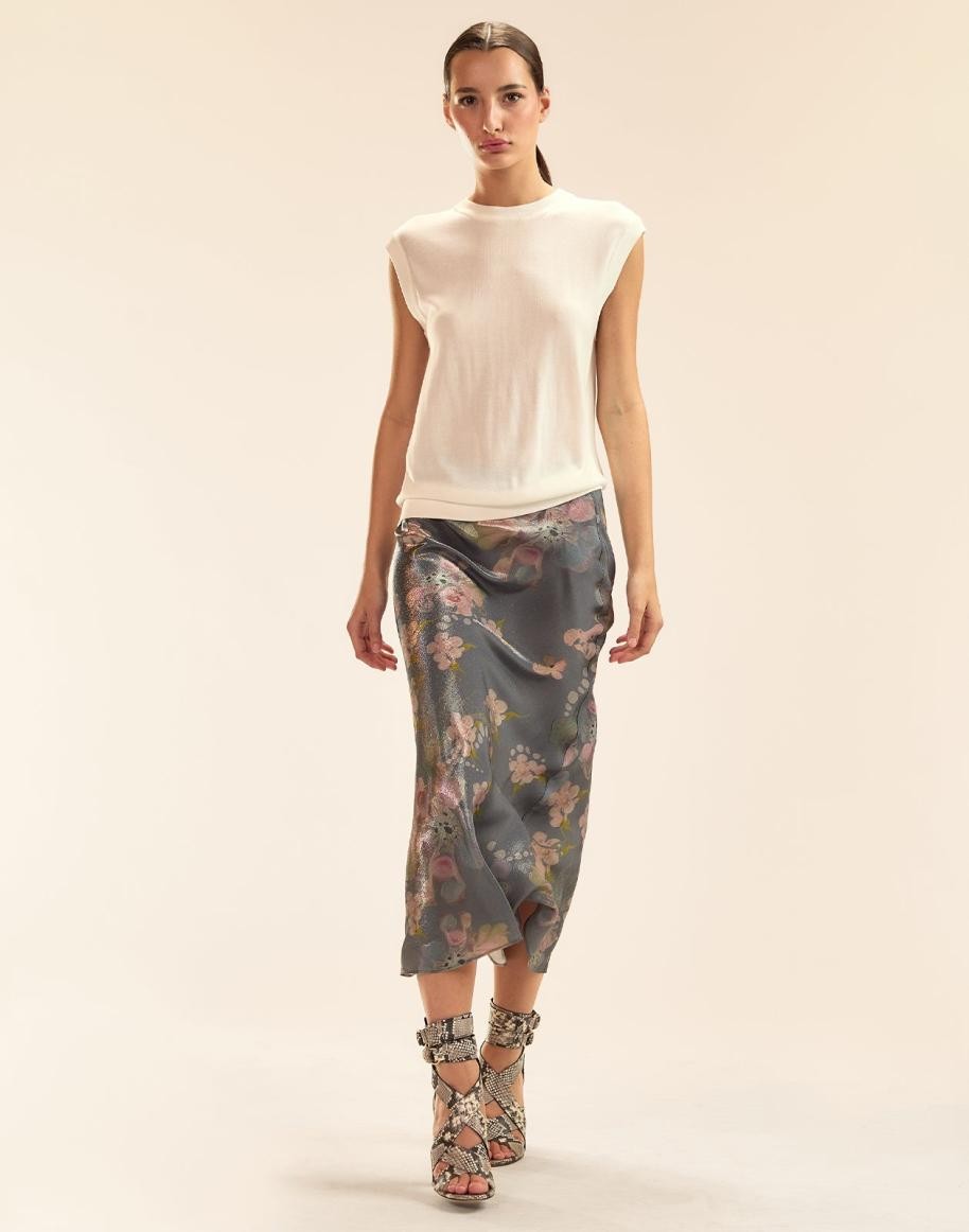 Pair this skirt with the Mica Sleeveless Knit Top and Cece Wrap Heel an elevated daytime look, which can easily transition to the night.
